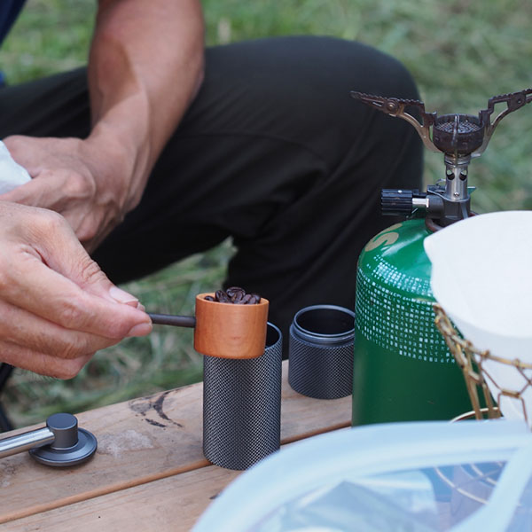 よくあるコーヒーメジャースプーンは10gが多いですけれど、こちらは小ぶりで一杯5g。マグカップの中にすっぽりと納まるサイズなので、小ぶりさを活かしてキャンプの時も連れていきます。自然の中で頂く挽きたての豆で淹れた珈琲は格別です。珈琲の油分でいい感じに変化してくるそうなので、それも楽しみです。ちなみに先日豆のままと挽いたものとでは、一杯の重さが変わってくるのではないかと思い実験してみたところ両方ともに丁度5gでした。