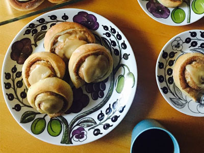 ブラックもイエローも素敵なパラティッシのプレートですが、テーブルに1枚、大皿として使うならパープルがいいなと思ってしまいます。みんなで取り分けるパンやお菓子をのせて出すと、お皿が空っぽになった時おいしそうなブドウやりんごの絵柄が現われるのも楽しいですよね。