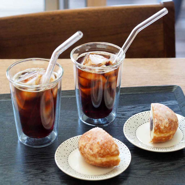 暑い時期に氷を入れた冷たいアイスコーヒー、美味しいですよね~。だけど水滴がついてグラスが濡れてしまって水滴がポタポタ垂れてしまうのが困っちゃいませんか?そんな時は、ダブルウォールグラスです!冷たさを長ーくキープしてくれるし、水滴もつきません!涼し気なガラスのストローでゆっくりティータイムを過ごしましょう。そうそう、ビールも最後まで冷たいまま飲み干せます!
