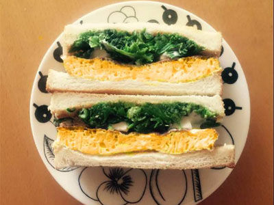 思い立って作った卵焼き厚めの『たまごサンド』、14cmのプレートにピッタリサイズでした。