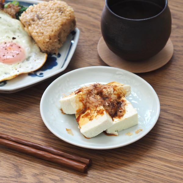 真っ白な器に施されたいっちん模様がとってもかわいい一枚です。写真ではなかなか見えづらいのですが、手に取るとそのかわいらしい模様がちゃんと見えます。冷奴をのせてもいいし、取り皿としてもさっと使えるサイズです。イッタラ ティーマの15cmプレートと重ねられるイメージなので、大きさの参考にしてみてくださいね。使いやすいサイズのプレートはこんな風にさりげなくかわいいと、食卓も嬉しくなりますね。