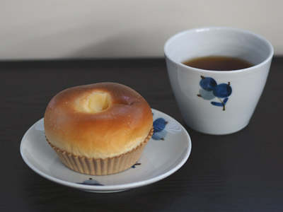カップは蕎麦猪口ですが、お茶やデザート用のフリーカップとして使うことのほうが多いです。ふっくらとした形とブルーベリーのモチーフがほんわかしていてかわいいので、のんびりしたいときに。大好きな九谷青窯の器を少しずつ集めているのですが、気づいたらすべてブルーの模様でした。