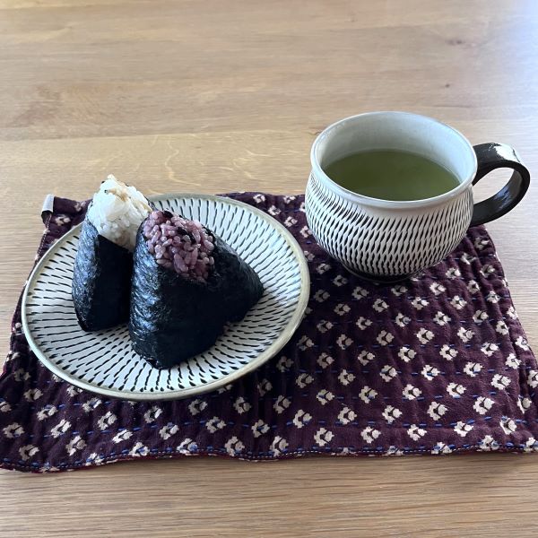 今日の朝ごはんはおにぎり2つと緑茶。マグカップに緑茶ってあんまり飲まないと思いますが、このマグカップはほっこりしてつい使いたくなるんです。ぷっくりとまあるい形が温かみがあって、コーヒーはもちろん、牛乳をたっぷり入れたミルクティー、とろりとしたコーンスープなどなんでも使いたくなっちゃいます。お皿は5寸皿。飛びかんながいい味を出していて外国の友人にも大好評です。