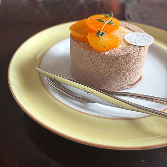 日本橋の兜町にある『ease』という素敵なケーキ屋さん、一つ一つのケーキへのこだわりがとてつもなくどれも素晴らしく、何を食べてもおいしいお店です。ここのイートインで出てきたカトラリーがクチポールムーンミラーのディナーフォークとナイフ。自分がケーキを食べるときはデザートサイズを使っていましたが、実際に使ってみると層になっていたりボトムがタルト生地のタイプものは特に、ディナーサイズの方がまとめてすくい易いのだと思いました。