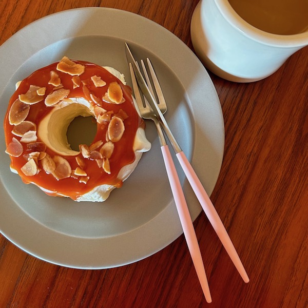 韓国熱が高まる一方の娘に影響されYouTubeで韓国旅行のVlogをウォッチする日々。見ているとおしゃれカフェのフォトジェニックなケーキや可愛い食器に目が釘付けになります。せめて雰囲気でも・・・と選んだのがクチポールゴアのピンクのカトラリー。普段なら手にしない色ですがSAKUZANのプレートと合わせると消えかけていた乙女心がくすぐられました。どちらもツヤのないマット仕上げだからカワイイに傾きすぎず落ち着いた雰囲気。またひとつお気に入りが増えました。