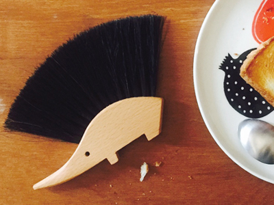 トースターを新調したので、せっかくならきれいに使い続けたいと思い、お掃除はこまめにするようにしています。パンくずはまずこのハリネズミのブラシでささっと落とします。ハリネズミってきれい好きって言いますもんね。幅をとらず自立してくれるので、トースター横に置いておいても邪魔にならないのもポイントです。ちなみに、トースターの受け皿にアルミホイルを敷いておくとさらにお手入れが楽ですよ。