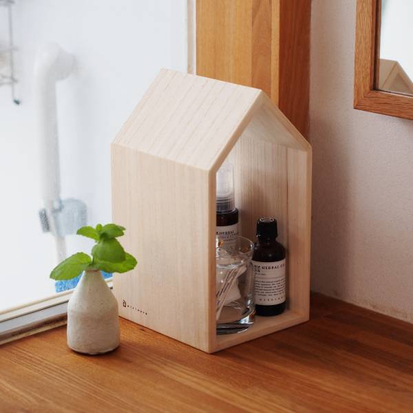 3つのサイズ違いがセットになっているブックハウスネスト。一番小さいサイズは私の基礎化粧品のおうちとして洗面室に置いてみました。屋根があるので埃もかぶらず、我ながら中々良いアイデア!家族が寝静まった夜は、小さいおうちごと抱えてリビングへ。ソファで寛ぎながら化粧水を肌へ染み込ませ、虫の音を聞きながら湯上りののんびりとした一人時間を楽しみます。