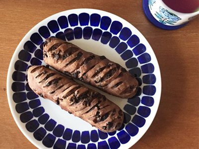 筆でちょんちょん、と描いた柄に一目惚れして買ったプレートです。可愛い見た目ですが使い勝手もよく重宝しています。パンをのせただけでも絵になるうえに、メインのおかずを盛っても映えるんです!