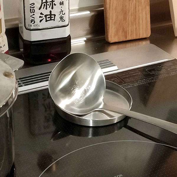 小さなお皿で代用していたお玉置き、買いました。期待していた以上に快適です。フチが斜めになっているからお玉も菜箸も転がらず安心。キッチンで邪魔にならないサイズ感と存在感を消すシンプルさもお気に入り。何より、調理中にえーっと…と手ごろな小皿を探す手間がなくなったのがいい!何でもないことがストレスになってるんですね。居場所があるって安心感です。