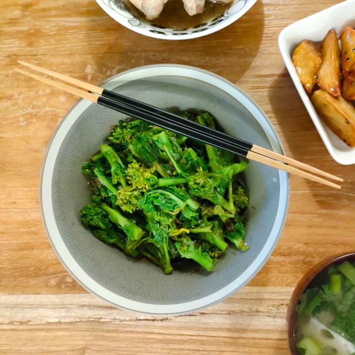 ほろ苦い春の味、菜の花のおひたしが大好きです。袋ではなく腹巻みたいに紙が巻かれているタイプ1把分が、ボウルに余白アリでいい感じに納まりました。我が家の食事は取り分けシステムなので、盛り付けも取る時も大きめの器がこぼさず安心です。マットな質感が好きで選んだのですが、1点だけ残念ポイント、、、ラップがピタっと付きません(ツヤのあるタイプは大丈夫だと思います)。とは言え、概ね食べ切ってしまうのでラップは今のところ不要です。