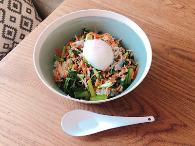 今日のリモートワークランチは、ビビンバ。このイイホシさんのボウルは、しっかりとした深さがあるのでどんぶりとしても使えます。煮物を盛りたいときも、たっぷりサラダを食べたいときも大活躍しています。そして薄手なので、大きさの割に軽いところも取り回ししやすくて気に入っています。