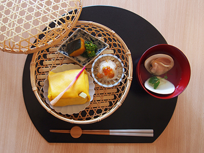 お雑煮に抜き型「寿」でひと手間