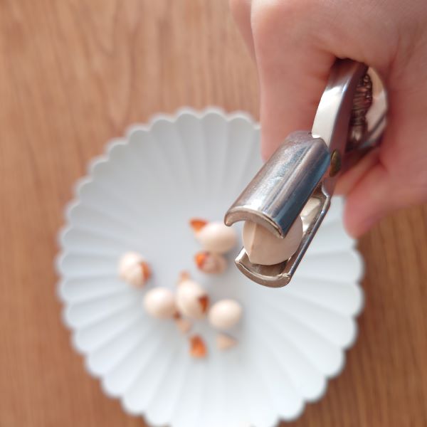 購入して数年たちますがうまく使いこなせず実までつぶれてしまうので引き出しの奥へ押し込んでいました。昨年家族が食べたいからと買ってきて「あの割るやつは?」というのでうまく割れないよと伝えて渡したところ、なんと上手に割ってる!!よく見ると、殻の筋を縦にして挟んでいました。私は横向きに入れていたせいで殻の弱い部分に力が入って実まで潰してしまっていたようです。ほんのちょっとしたコツなのに知らなかったーーー。これからは心置きなく銀杏が楽しめそうです。