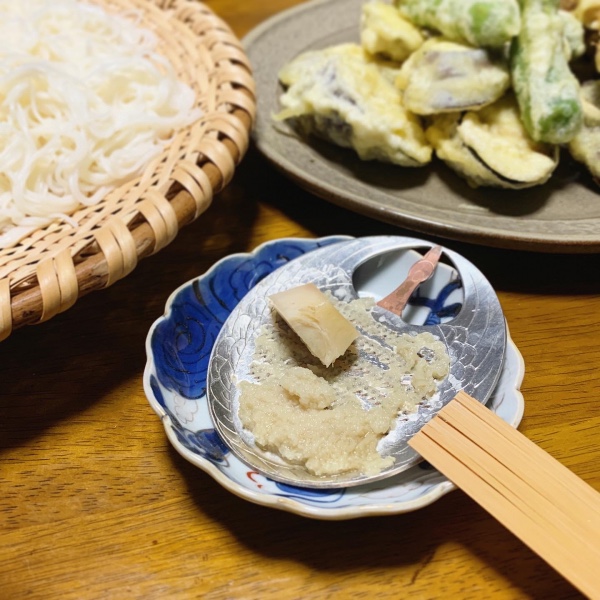 メイドインジャパンな銅製おろし金が気になっていたので、鶴のモチーフが素敵な卓上おろし金を使ってみることにしました。生姜を少し使いたいときなどに重宝しています。素麺や冷奴の季節は卓上でおろしたてをどうぞ。職人技の目立ては鋭いので竹製の「べんりはけ」があると便利です。一緒にお買い求めいただくのがお勧めです。