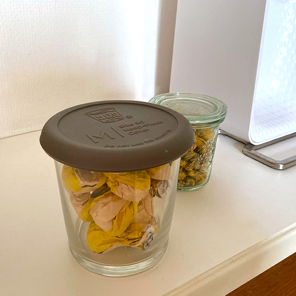 WECKのキャニスターをどのように使うかによって、蓋のセレクトが変わってきます。長期保存用の煮沸・脱気をする時に必需品のクリップ&パッキンセット、よく使う調味料などはプラスティックカバーで開け閉めをスムーズに、そして液体の保存にも安心なシリコンキャップなどなど。自分の暮らしにフィットした使い方をお楽しみください。