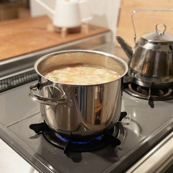 蒸し器としての素晴らしさは別のコメントでお知らせ済みですが、蒸し器を外すと半寸胴鍋としても使え、日々大活躍しています。今回は家族が大好きな豚汁をたっぷりと作ってみました。汁物好き家族三人が次の日も楽しめる量が作れます。他にもパスタや蕎麦など麺類を茹でたり、たっぷりのカレー、タケノコを茹でる時など、この深さがうれしいと思えることがキッチンに立つと次々に出てくるんですよね。底が三層構造なので焦げ付くこともなく、半寸胴鍋として十分に使えますよ。