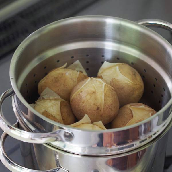 店長みさこに勧められ、蒸し器は中華せいろがあるしなーと思いつつ、そんなに言うのならと会社のサンプルを借りてみました。驚いたのはこのスチーマーの深さ。中華せいろと違って深さがあるので、ジャガイモやトウモロコシのような嵩張るものを蒸すときには便利そうです。早速家族が大好物のポテトサラダ用に直売所で買ったジャガイモを一袋を入れたところ、まだまだ余裕の深さー!スチーマーを外せば半寸胴鍋としても使えるので、たっぷりの豚汁やカレーなどを作る時にも便利ですよ。
