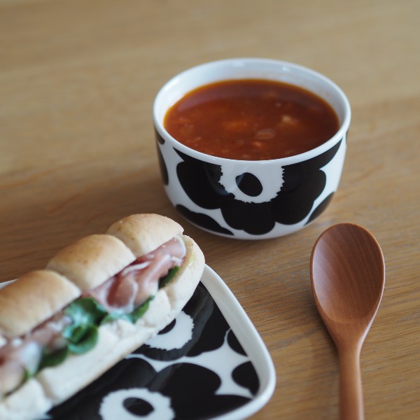 プロキッチンでご紹介しているマリメッコの食器は、普段の食卓にも取り入れやすいカラーを中心に取り揃えられています。定番のUnikkoは大きな柄が特徴ですが、黒一色なのでキリっとシックにテーブルを引き締めてくれます。大人になってもかわいいものに心惹かれるとき、私にとってマリメッコは強い味方です。容量250mlのボウルは朝食や軽食用にも使いやすく、スープ、ヨーグルト、サラダなどいろいろな用途で活躍しますよ。