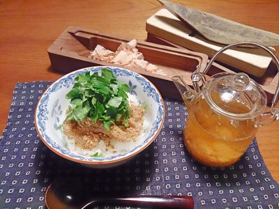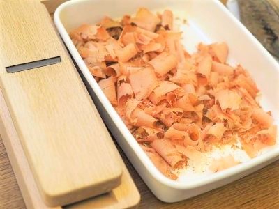 宮大工の職人さんを思い出してしまうほど、シュッシュッと薄く削ることが出来ます。だし茶づけには、急須にかつお節を入れてからだしを注いで追いがつおをしてみました。更にかつお節の香りがたって家族も喜んでくれました♪