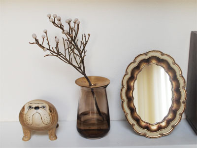 プロキッチンで取り扱う前から持っていた花瓶。ピカピカだった真鍮部分がいい感じに味が出てきてますよ。ガラスは落ち着いたブラウンにしてみました。真鍮のアンティークな雰囲気と合っていますよね。1輪だけでも安定して飾れるし花束も飾れちゃうのでひとつあると便利ですよ。