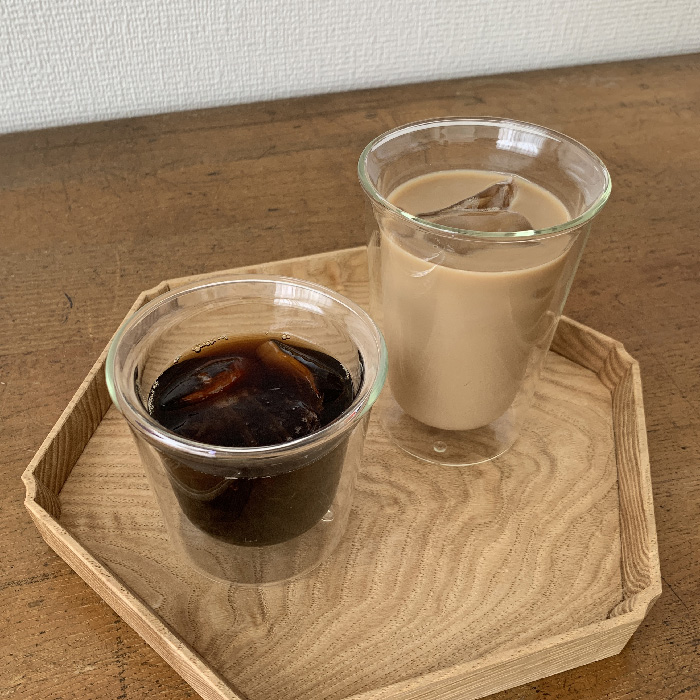 KINTOダブルウォールのロックグラスを去年の夏から使いはじめ、結露しないのでデスク横のお供として重宝していました。遅れること1年後、家族が急に「これは良い!」と言い出したのです。きっかけはロックアイスを使った時、氷の持ちが良く長時間冷たい状態をキープできたことでした。今では毎朝アイスコーヒーをブラックで飲んでいます。私はロックグラスではカフェラテに物足りなくなったのでカクテルグラスを買い足しました。これからも良いお品物をご紹介できるようコツコツ頑張ります!