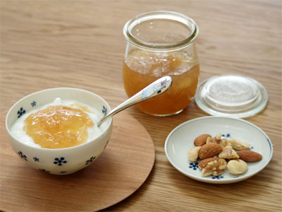 食べすぎたな~という日の次の日の朝食は、軽く済ませて胃を休めてあげるとお昼にはすっきり。ヨーグルトに洋ナシジャムを入れて。容器は丸直製陶所の染付陶碗。大好きなシリーズで数種類持ってますが、今日選んだのは「なごり雪」。来客時に出すと、「ステキ~!」とほめられちゃう器ですよ♪