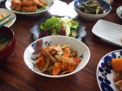 特別なごちそうではなく、いつもの食卓で活躍する器です。少し深さのある楕円鉢はきんぴらやちょっとした炒め物など副菜の盛り付けに最適。さりげないビオラの絵柄が地味な料理に華やかさをを添えてくれます。