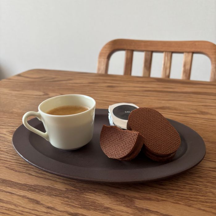 バレンタインチョコは日々の自分へのご褒美だと思っている私ですが、選びきれないほどのチョコレートが店頭に並ぶこの時期はショーケースを眺めているだけでもワクワクします。一足お先に頂くバレンタインスイーツは、地元長野のパティスリーの濃厚ガナッシュサンドとエスプレッソ。SAKUZAN SaraのオーバルMは、スイーツと小さなカップをのせるのにちょうどいい大きさで、お家でカフェ気分を味わえます。プロキッチンオリジナルの「チョコレートブラウン」という名前もバレンタインにぴったりのプレートです。