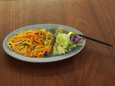 今日のランチはパスタにします。大きめのこのおさらがパスタとサラダを山盛りのせても受け止めてくれます。グレーは今まであまり手に取る機会がなかったのですが、使ってみるとどんなお料理にも合うので重宝しています。