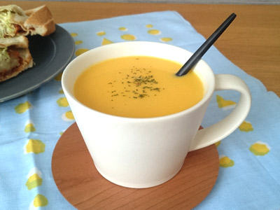 SAKUZANのカップは独特なマットな質感のおかげなのか、飲み物を飲むときに(特にとろみのある飲み物は)なんだかおいしく感じます。今回はかぼちゃのポタージュを入れてみました。山吹色のスープとアイボリーに近いクリーム色のカップとのコントラストが気に入っています。