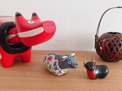 12月も半分ほど過ぎたので年始に飾る用に丑の置物たちを拭きあげました。真工藝の丑は飛騨高山旅行の時に記念として十二支まとめ買いしたもの。ちなみに左は東京で買った赤べこ、右は善光寺で買ったおみくじです。優しい雰囲気が漂う真工藝のぬいぐるみはテレビ前に置いて1年間愛でる予定です。