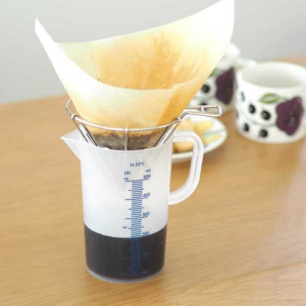 コーヒーはミルクたっぷり派なので濃いめです。会社ではケメックスで淹れるのですが、メモリが分かりにくくて私が淹れると当たり外れがあったんです。先日テルモハウザーをサーバーとして使ってみたら、ぴったり5:5のカフェオレが完成。(拘る方にはおすすめしません)このメモリ見やすい~!いま使っている計量カップよりかっこいいし、購入決定です。