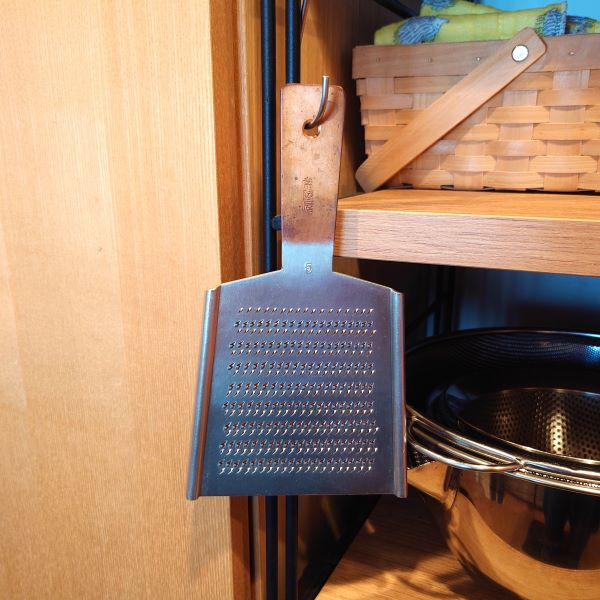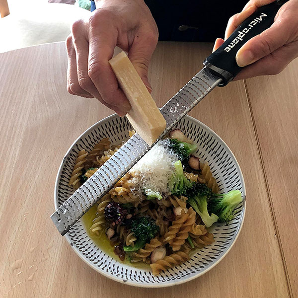 イタリアンレストランでよく仕上げに、チーズがふわふわ~とかかったパスタやリゾットが出てきて、思わず「おいしそう~!」と思ったことはありませんか?それが自宅でもこの道具さえあれば簡単にできるんです!見た目だけじゃなくて、チーズがふわふわになることで食材に良く絡み、絶妙な味付けができるので、自宅でも簡単にお店のような仕上がりになりますよ。 ちなみに、私が持っているのは数年前に購入した旧タイプ。持ち手のデザインがちょっと違うだけですが、刃の部分は発売当初からそのまま。そして何年たってもその切れ味は変わりません!!