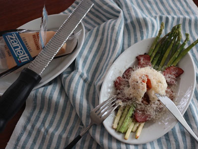 お昼ご飯は残り物のパスタ。残念な感じですが、オリーブオイルを足してレンチンしてからパルメザンをすりすりしたら、ちょっと息を吹き返してくれました。わたしは削りたてを堪能したいので途中で追いチーズします。お皿の上で気軽にすれるのがうれしい。人気のマイクロプレイン、個人的にはもう少し短くてもいいのにっと思いますが、一般的なシステムキッチンの引き出しなら余裕で入ります。持ち手の色で悩んだけれど、汚れが気にならなそうなグレーにしました。薬味の季節到来、ニンニクやショウガを毎日すりおろします!