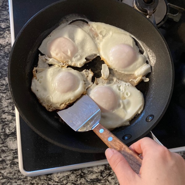 この「薄さ」と「しなり」で調理した物とフライパンの間に気持ちよく入っていき、きれいに剥がせます。餃子、目玉焼き、ハンバーグ、魚のムニエル、お好み焼きなど焼き目をつける料理のターナーとしてお勧めです。ただこの「しなり」の影響で大きめの物を裏返す作業は不得意。その際は菜箸を添えるとうまくいきますよ。