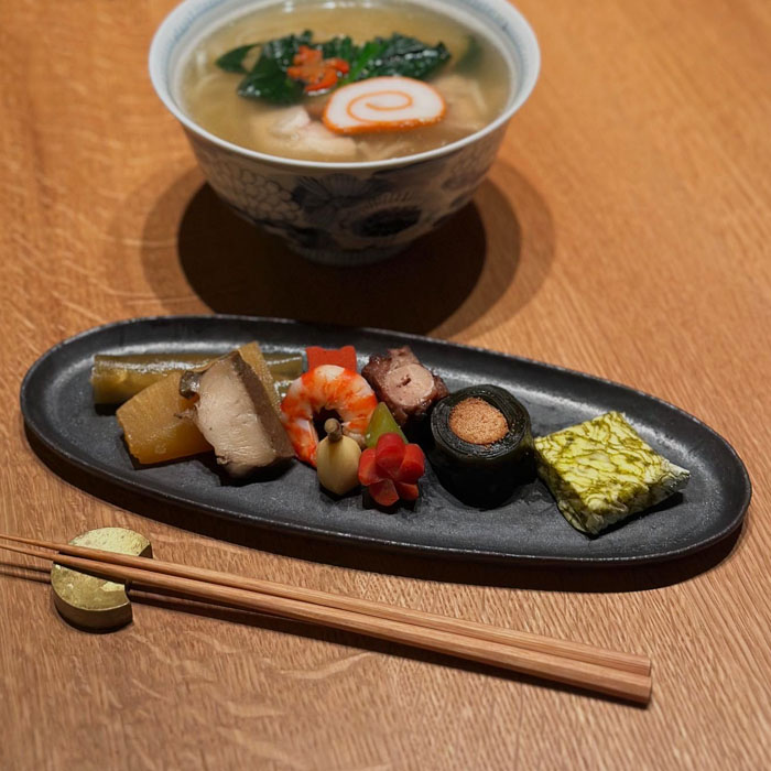 お節、我が家は家族の幼馴染である懐石料理人が作ってくれるので私はお雑煮の準備だけ。お節は京都金沢の流れを汲んだ丁寧で贅沢な仕事が隅々までされています。それを家族は楽しみにしており「ひょいぱくひょいぱく」と幸せそうに食べるのが恒例のお正月です。お重の中が寂しくなってくると器に盛り付けていただきます。ただいま飯高幸作さんのオーバル皿を愛用中。シックな刷毛黒は和食もさらっと受け止めてくれ、お料理が引き立ちました。目先が代わって家族も喜んでおります。