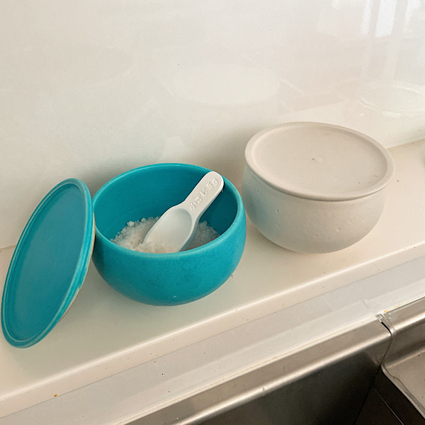トルコブルーとホワイトのkoushaのフタックを、塩と砂糖入れにしてみました。丸いフォルムが愛らしく、白と黒が多いキッチンにパッと鮮やかなトルコブルーが映えて気に入っています。つるんとした釉薬は、洗いやすくて清潔に保てます。意外にもレンジ対応可なので、作り置きおかずを保存しておくのもおすすめです。