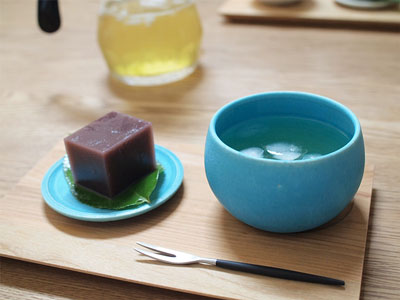 一目見て、ただ単純に「かわいい!」と思ったフタック。コロンとしたフォルムとマットでもつやつやでもない質感、そして蓋が平らなので、積み重ねることもできるしこんな風にお皿としても。Lはお茶には大きいかな?と思ったけど冷茶がたっぷり飲めてステキでした~!
