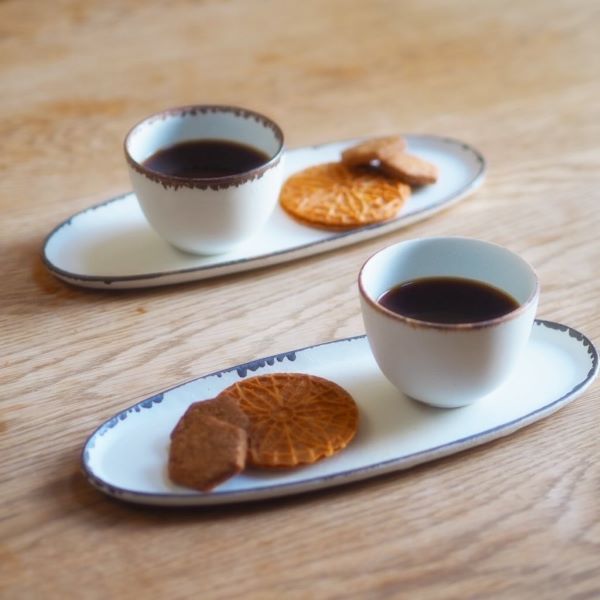 作家さんの手仕事が生み出すお皿には、一つひとつ異なる表情があり、既製品にはない温かみが感じられるところがとても魅力的ですよね。プロキッチンスタッフの「こんなのが欲しい!」という思いを形にしていただいた「オーバル皿」は、そのこだわりが詰まった特別な一枚です。細長いけれどコンパクトなデザインで、平らな部分が広いのでサンマ一匹も乗せられます。使い勝手抜群のこのプレートが完成したときは、本当に嬉しかったです!湯呑とセットで使うのも気に入ってます♪