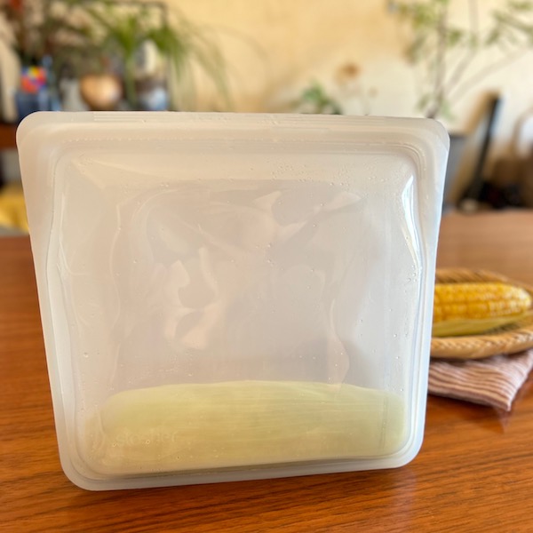 やってらんなーい!と悲鳴をあげながらのごはんの支度が苦行になり始めたので、ガスコンロから電子レンジに熱源をチェンジしました。電子レンジ調理をする際の道具ってたくさんあるけれど、わたしの相棒は繰り返し使えるスタッシャー。何よりシリコンバッグの中にポンと食材を入れるだけのお手軽さと時短が叶うワンボウルメニューもこれ一つで完結するのが嬉しい。今日は薄皮付きのとうもろこしをレンチン5分。加熱直後はジッパー部分から高温の蒸気が噴き出してくるので火傷に注意です。