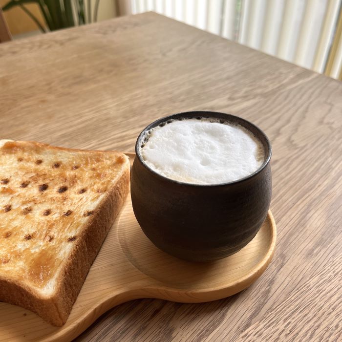 この焼き締めの渋さと、まあるい形に一目惚れ。口元が少し反っているので口当たりがいいんです。私はこのカップには、コーヒーにミルクフォームを入れるのが好きなんですが、泡がふわっと留まってくれてなんともほっこりするんですよ~。プロキッチンで取り扱う前にココチ舎で購入してから気に入りすぎてお取り扱いをお願いしました。とってもおすすめです♪