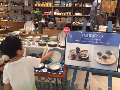 以前、息子とお買いものに行ったときに、たまたま寄ったお店で「丹波篠山フェア」でココチ舎の器が並んでいました! ついつい触りたくなる器、というだけあって息子もつい手を伸ばして・・・こらー!触っちゃだめよ~。