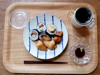 このお皿、和食器なんですがブルーのスリップが爽やかで、軽やかに使えちゃいます。どんなお料理でも悩まず合わせられるので最近のお気に入りの一枚。北欧食器だとアラビアのアベック20cmと同じような使い方ができる和食器だなーと思います。