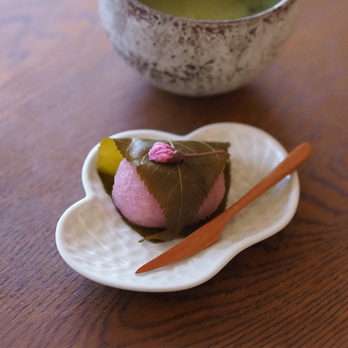 もうすぐひな祭りなので、母が桜餅を作ってくれました。どんな器でいただこうかな〜と思った時、目に留まったのがこの器。勝手に「松葉形はお正月限定のお皿なのかしら?」と思っていたのですが、縁起物の柄ではあるものの、季節は問わないとのこと。白い磁器に白いラインが入っているところが一癖あって、とてもお気に入りの器です。サイズも和菓子をいただくのにぴったり。桜餅って、塩味と甘さのバランスが絶妙ですよね。お抹茶とともに、幸せな甘味時間を過ごしました。