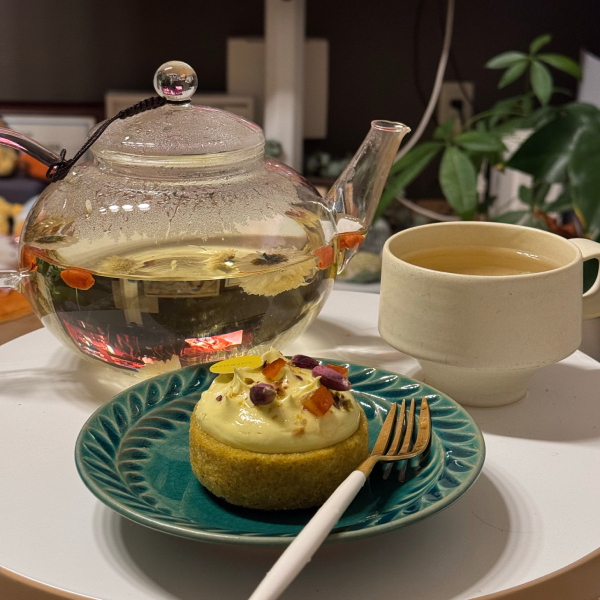 落ち着いているのに、決して地味ではないトルコブルー。どんな時間帯の食卓にもすっと馴染んで、何気ないおやつ時間もちょっと特別に見せてくれます。縁にぐるりと入った葉っぱ模様のおかげで、ケーキも美味しそうに映えるのが嬉しいところ。気がつけばいつも手が伸びてしまう、我が家の“ついつい使っちゃう”お気に入りお皿です。