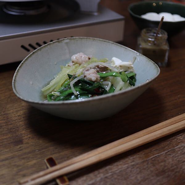寒い日はお鍋にすることが多い我が家。特に今年はふるさと納税で届いたもつ鍋がおいしくてもつ鍋の頻度が高いのですが、具もスープもたっぷりいただきたいときにおすすめなのがこの楕円鉢。市野耕さんからも、お鍋のとんすいに使える!と教えていただいたので早速試してみたところ、楕円の形が持ちやすいし、横の部分からスープが飲みやすい!お鍋の〆のちゃんぽん麺だって最後までおいしくいただくことができました。重ねて収納もできるので家族分揃えたい器です。
