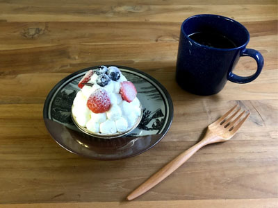 ちょっとレトロな佇まいのスノーボウルシリーズ。縁のブラウンとミルキーなカラーがたまらなくかわいい器です。今回は店長美佐子お手製のキャラメルソースをかけたアイスでちょっぴりリッチな休憩時間。バニラのアイボリーとキャラメルソースの色が器の色と相性が抜群で、眺めてうっとり食べてにっこり。どんどん暑くなる夏、これから出番が増える季節です。目からも涼を取り入れておいしく乗り切りましょう!