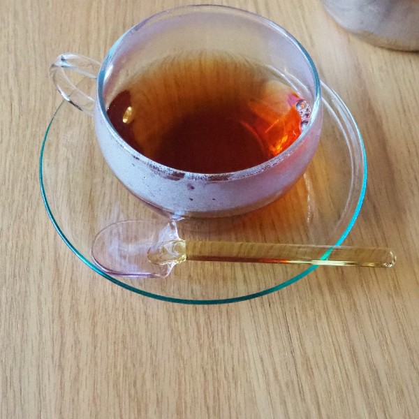アマブロのSNOW SHOVELシリーズのガラスのスプーンはアイスやゼリーなど冷たいスイーツをいただくときのイメージがありますが実は耐熱性。食洗機もOKだし温かい料理にも使えるんです。 いつもはストレートでいただく紅茶も冬はぽかぽか効果のある黒糖生姜をいれて飲むので、かきまぜるスプーンとして使っています。ガラスがきらめいてとてもきれいなんです。お茶だけでなくフルーツ入りのホットワインとかをいただくのにもいいですね。