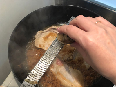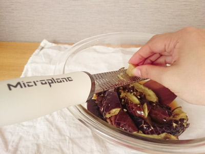 いままでおろし金と受けの器を両方洗うことにわずらわしさを感じていました。でも、このマイクロプレインは細いから、鍋やお料理の上に直接すりおろしても散らばらないし、洗い物もこれ一本をたわしなどでザザっと洗えばよいので、いままでよりも気軽に薬味をおろせるようになりました。