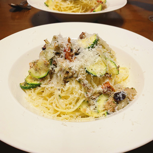 最近のお気に入りの簡単パスタ。ニンニクスライスをオリーブオイルで炒め、タコを放り込み、味付けは茅乃舎の野菜だしのみ。最後にたっぷりのパルミジャーノをお好みで。こちらのチーズグレーターはおろし心地が余りにも軽やかなので、ついついチーズが山盛りになっちゃうんですよね。チーズ以外にもニンニクやショウガのすりおろしはいつもこちらでスリスリしています。調理中のお鍋に直接すりおろせちゃうのがお手軽で超便利です!